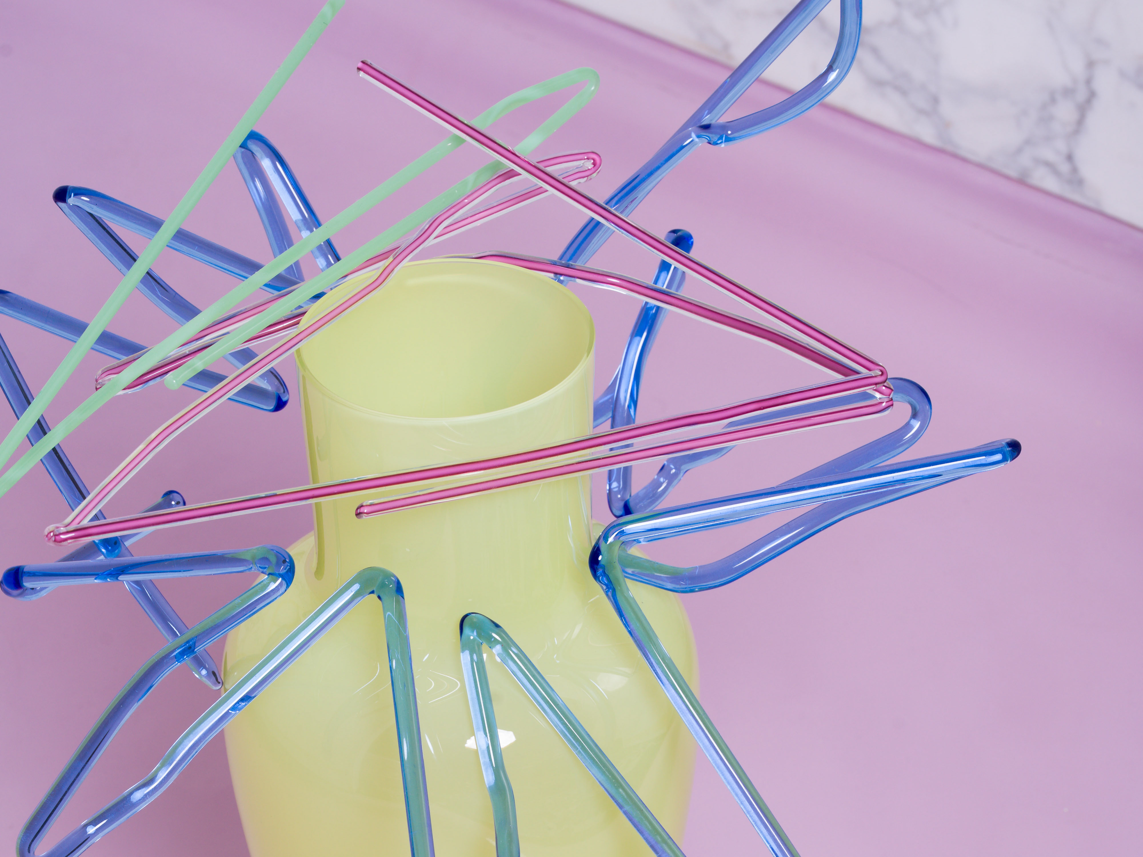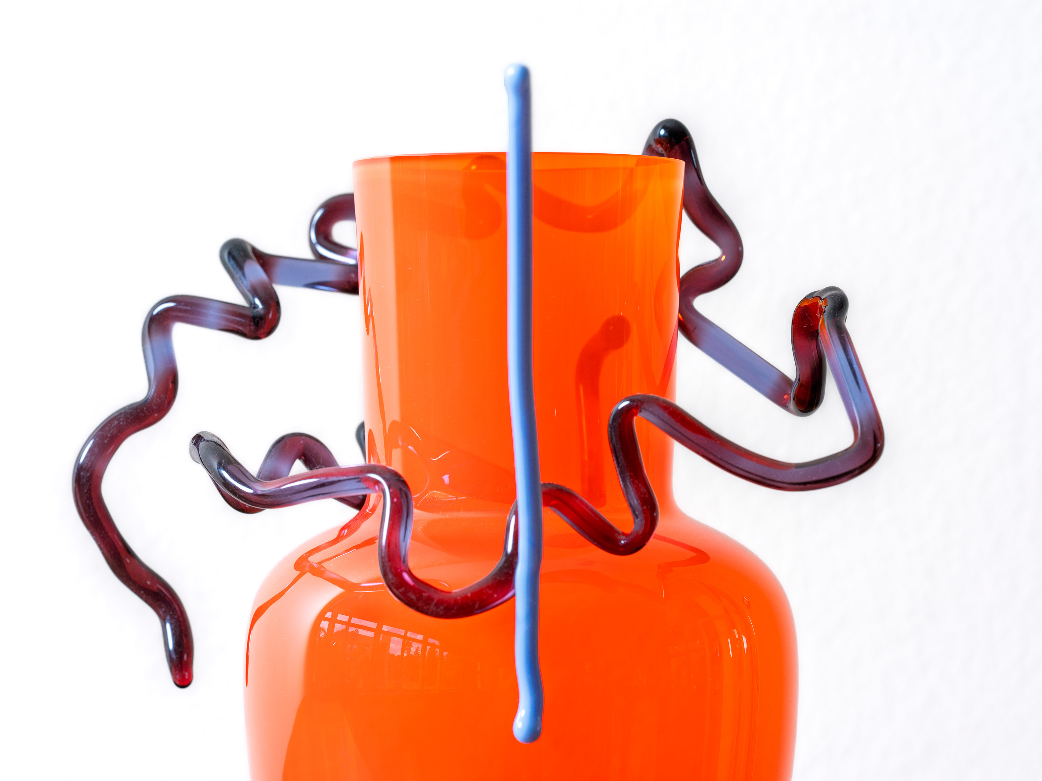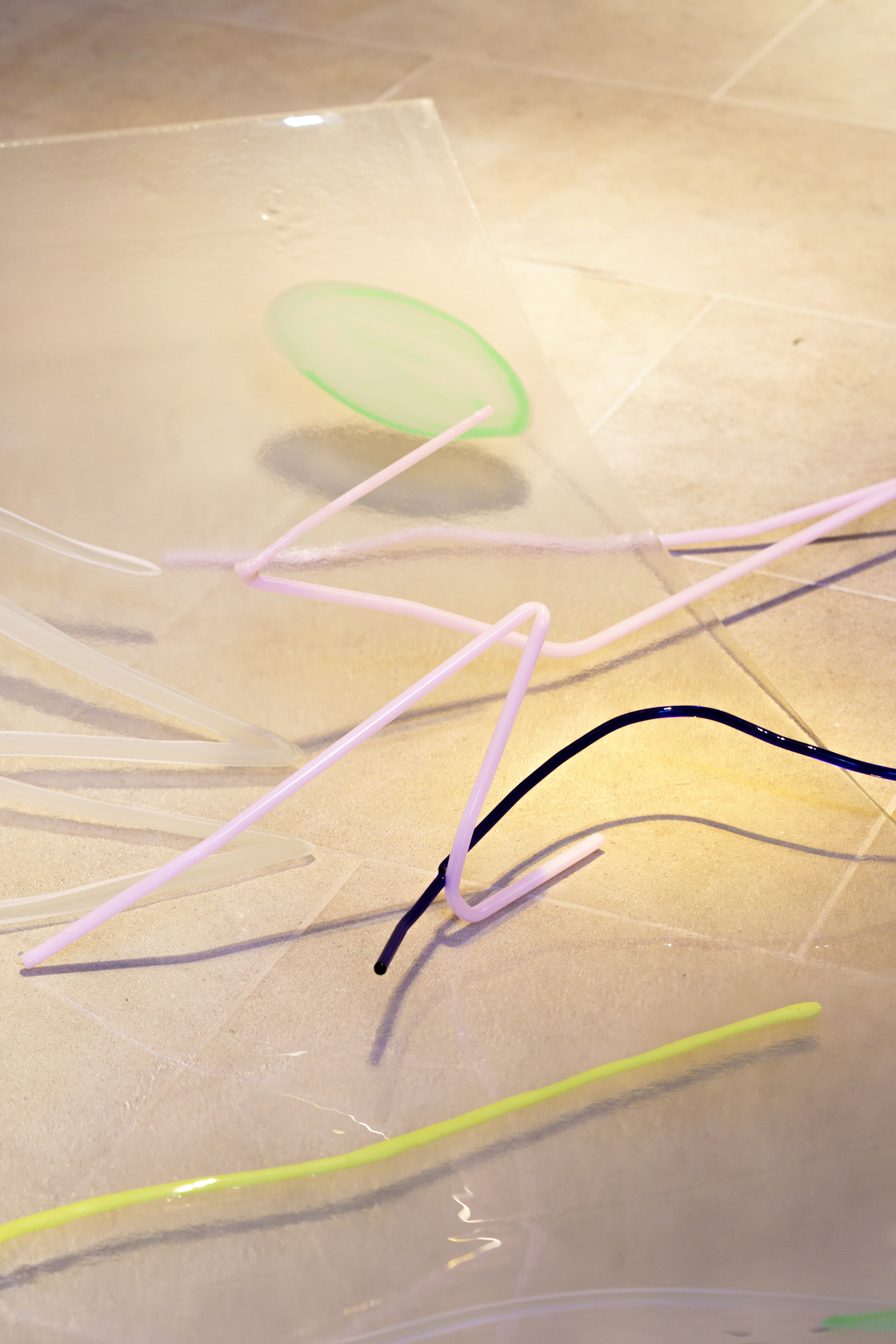 The exhibition Beyond Format presents the current work of glass artist Pavlína Šváchová, emphasizing the dialogue between drawing, glass, matter, space, and movement. It is based on experimental research into the possibilities of lampwork glass, its malleability, and its expressive potential, which transcends the plane of two-dimensional drawing into a glass object. A key element of the exhibition is the glass rod — a simplified, pure bearer of line, the distilled essence of drawing. It leaves the medium of drawing and enters space as a material drawing that becomes an object. Its mass carries fragility, tension, and resistance, while remaining in constant dialogue with the body, movement, color, and light. Drawing here is not just the result of a gestural record, but a form of thinking in matter, connecting craftsmanship, design aesthetics, and the principles of contemporary intermedia art. The curatorial approach emphasizes the themes of lines, bodies, and their movement in space. Drawing is conceived as a process — sometimes pointillist, sometimes linear, often scattered or concentrated in a single object. The architecture of the exhibition plays a key role, based on the specifics of the given space and determining the rhythm of the installation, the orientation of the objects, and the play of light and shadow. A glass rod — an object placed on a panel, on slumped glass, or on cement blocks — accentuates the surface, point, and line — drawing in its elementary form. Slumped glass then shows the possibilities of the material's malleability in the tension between the technical challenge and the poetics of the resulting form. Each point of contact between the glass and another surface raises the question of relationship: what happens when a drawing becomes spatial, glass matter becomes lines, and shadow becomes image? Shadow is also an important element of the installation, extending the physical dimension of the object by another plane of perception – optical, psychological, and temporal. The projected image of a glass line becomes an ephemeral drawing that exists only in a given moment of light. Beyond Format is not only the title of the exhibition, but also a call to transcend the boundaries of traditional disciplines – to explore drawing as a living, space-time process and an intermedia language of contemporary art, realized through the medium of glass. curator: Lenka Sýkorová