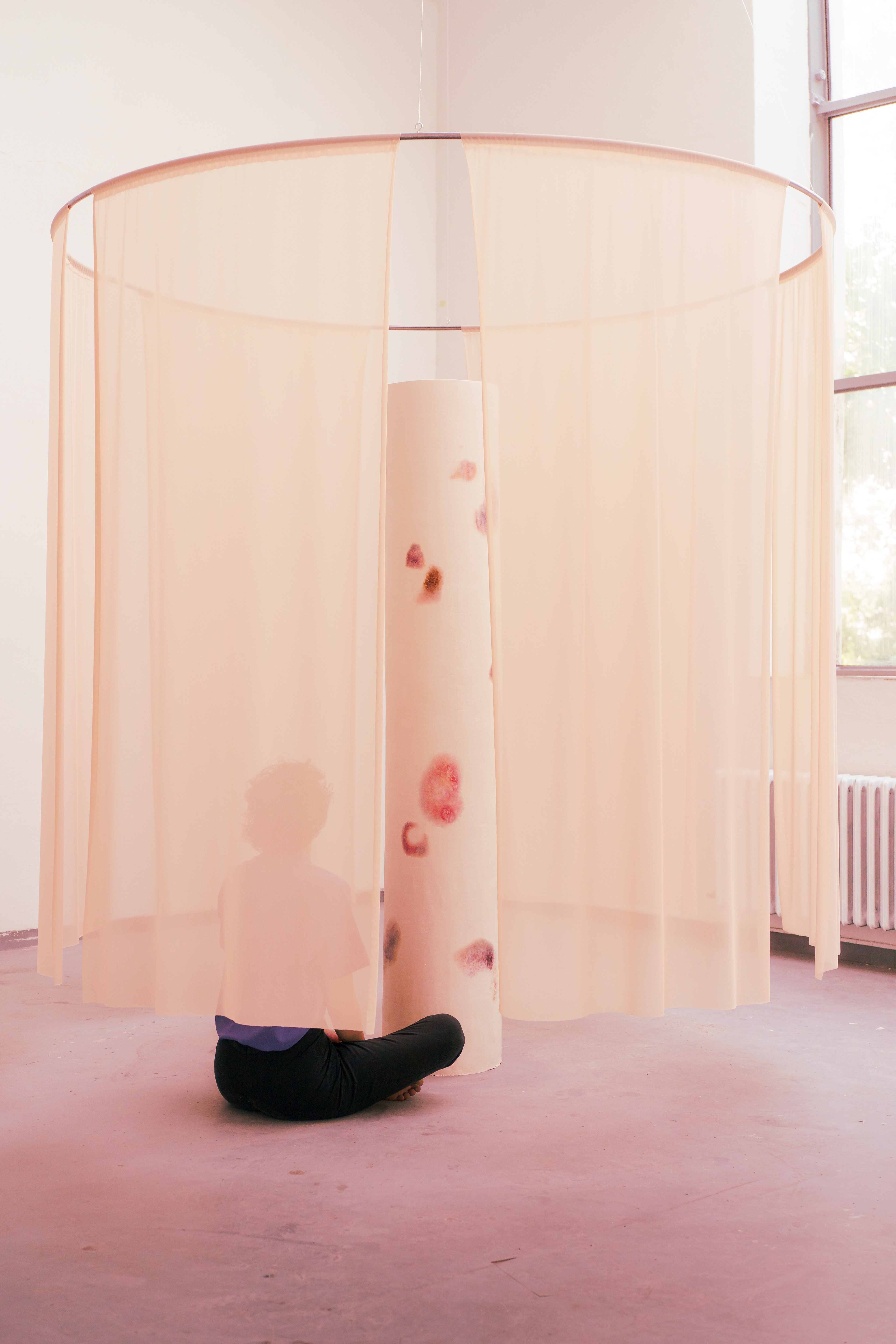 Inspired by a therapeutic experience, the spatial installation serves as an intimate place to lay down our pains. It signifies the affinity of the human body with the anthropomorphic nature of the column.