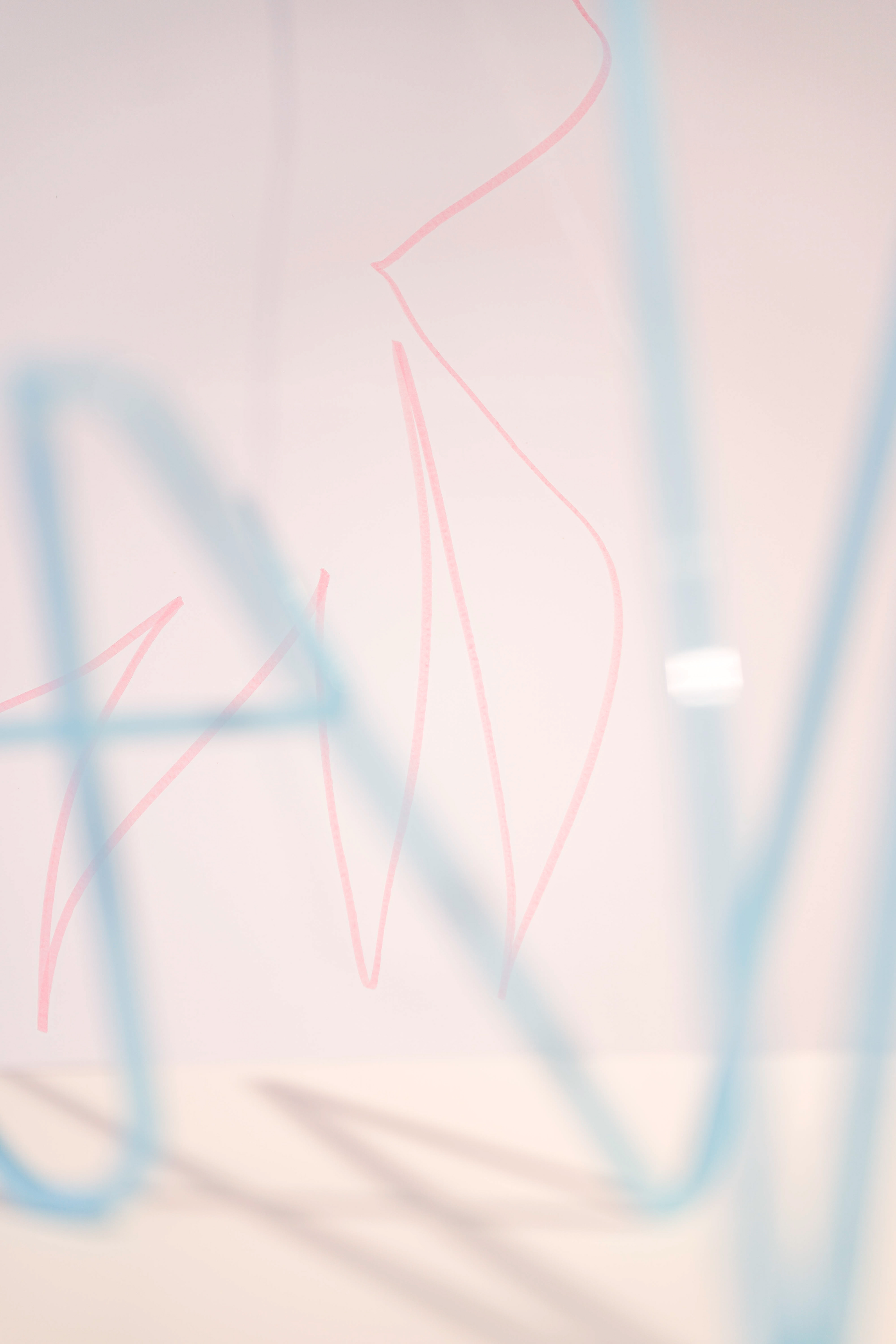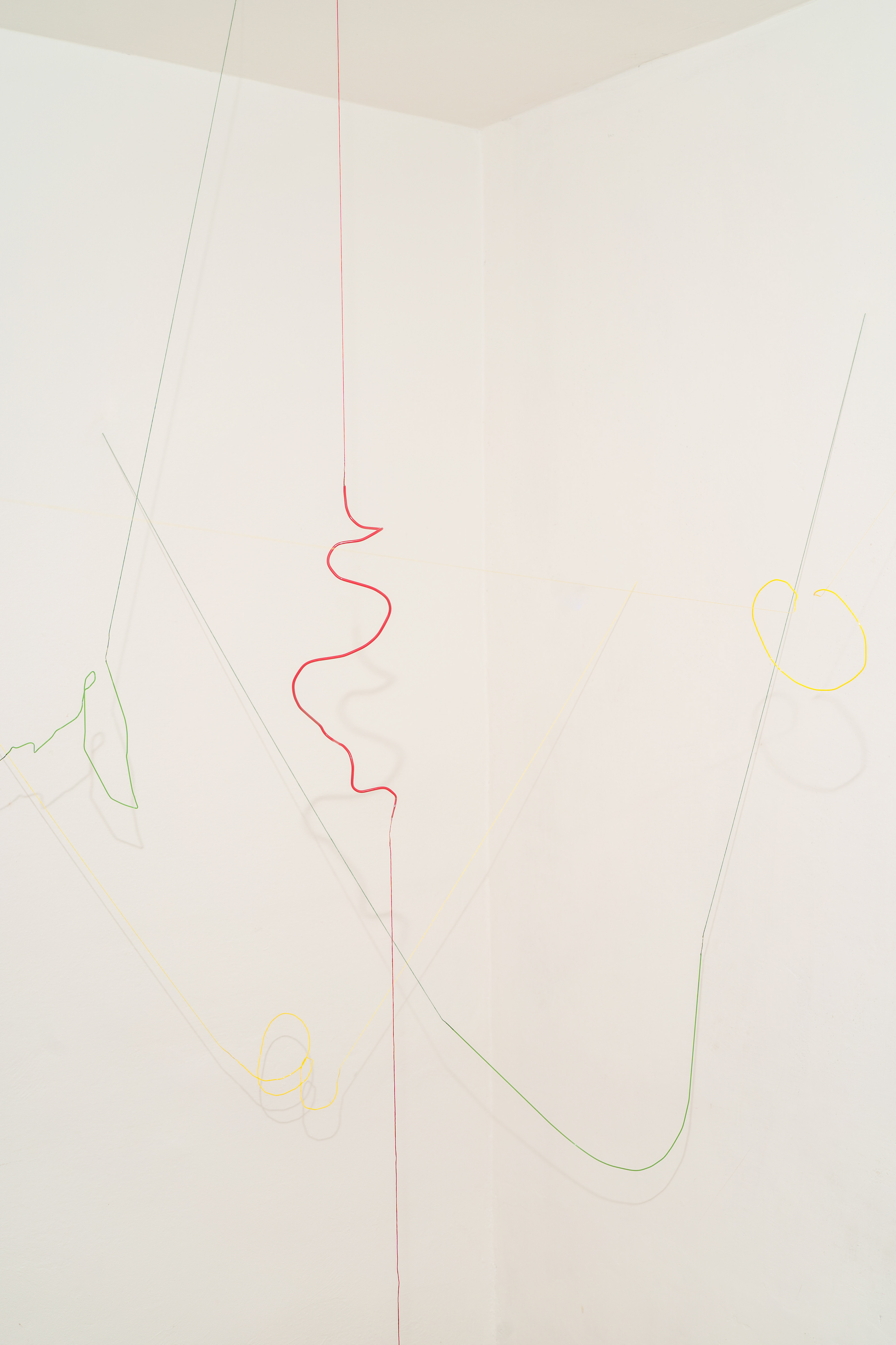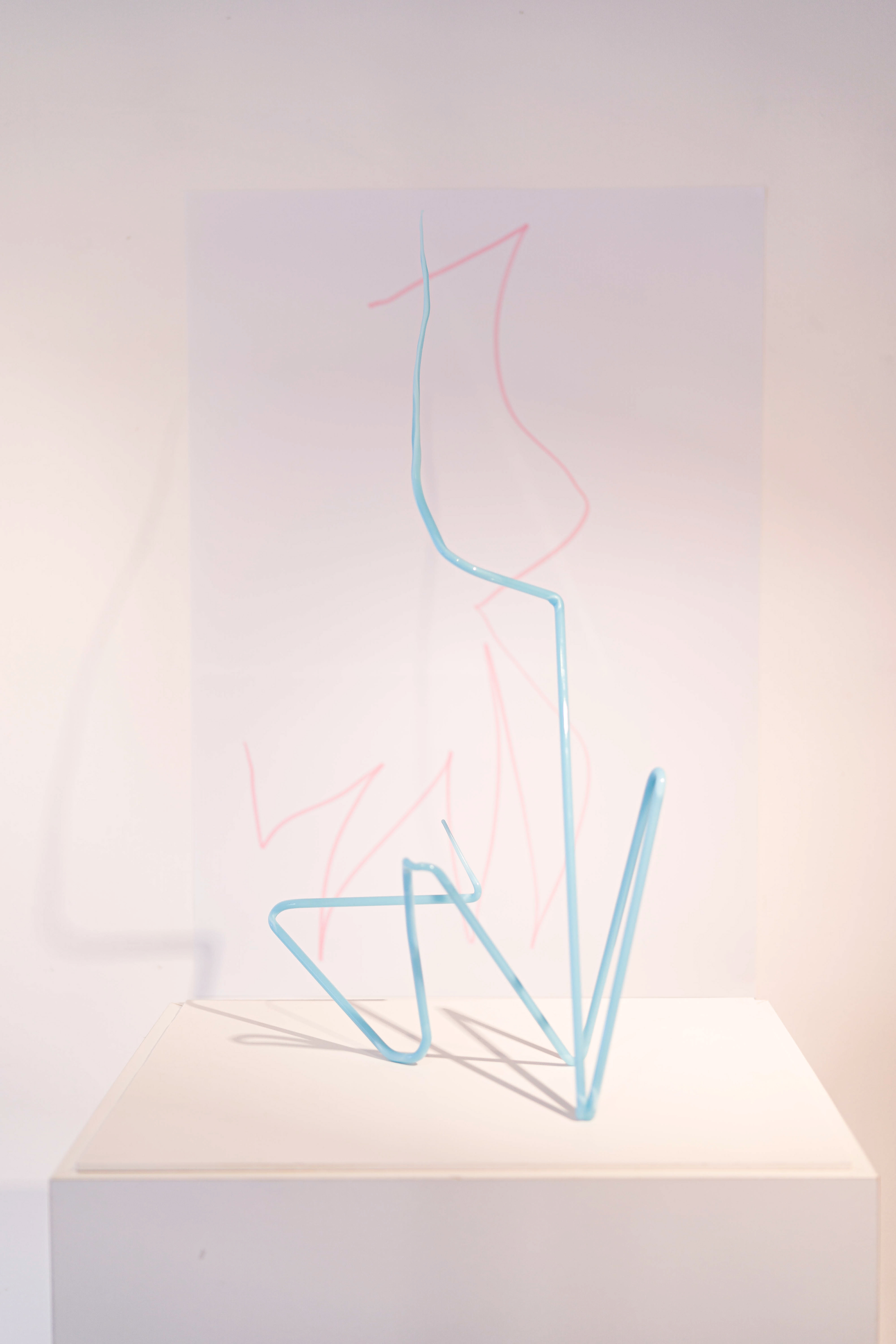 Výchozí materiál techniky lampového skla – skleněná tyčinka – v této práci chápána jako linie či čára, která se působením tepla formuje do prostorové struktury (materializované kresby). Vlastnosti materiálu a technologie se stávají omezením i předmětem experimentu, který zkoumá a prověřuje možnosti lampového skla. Práce otevírá otázky o prostoru, hmotě, ale i o samotné technologii a autonomii lampového skla v nových souvislostech.