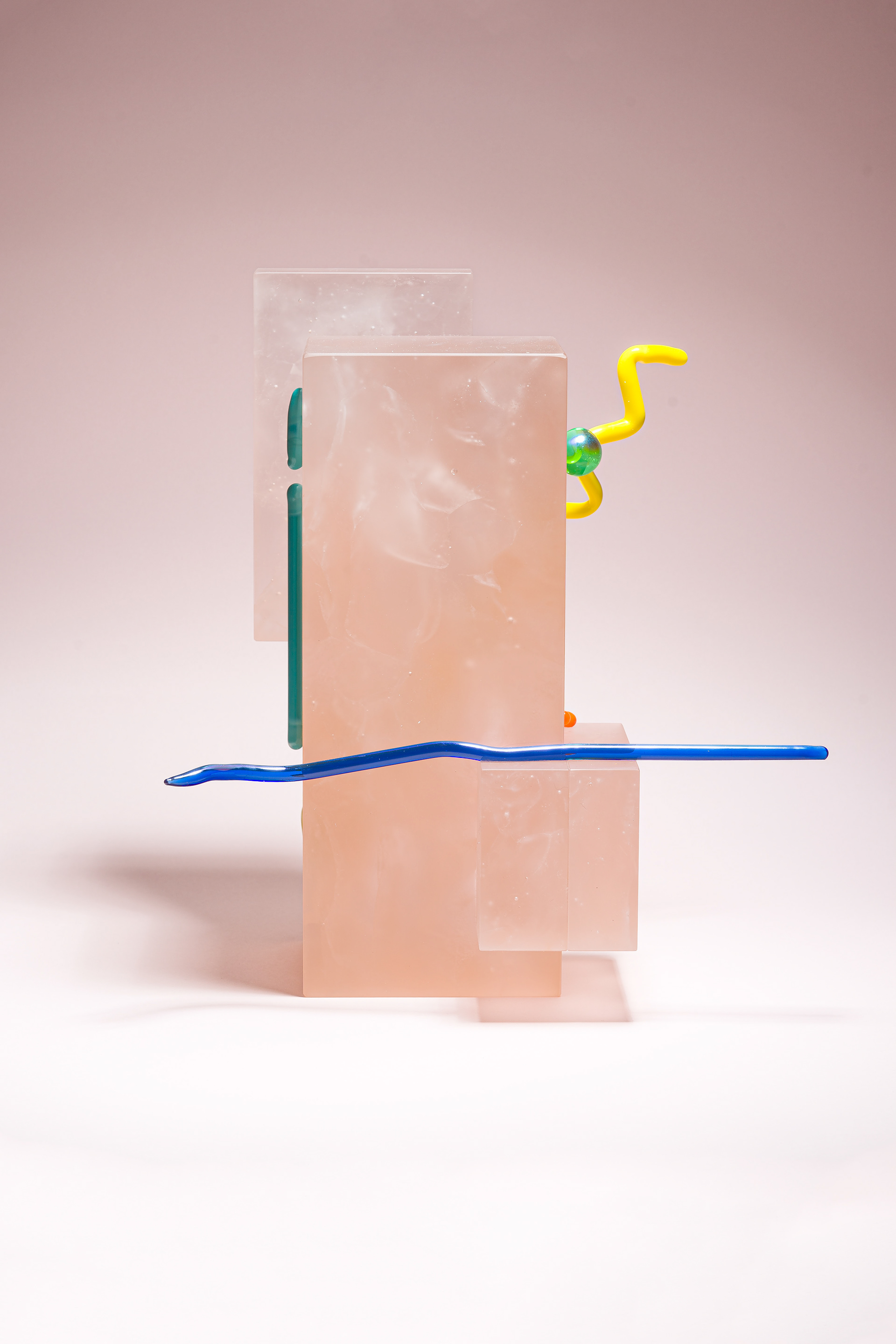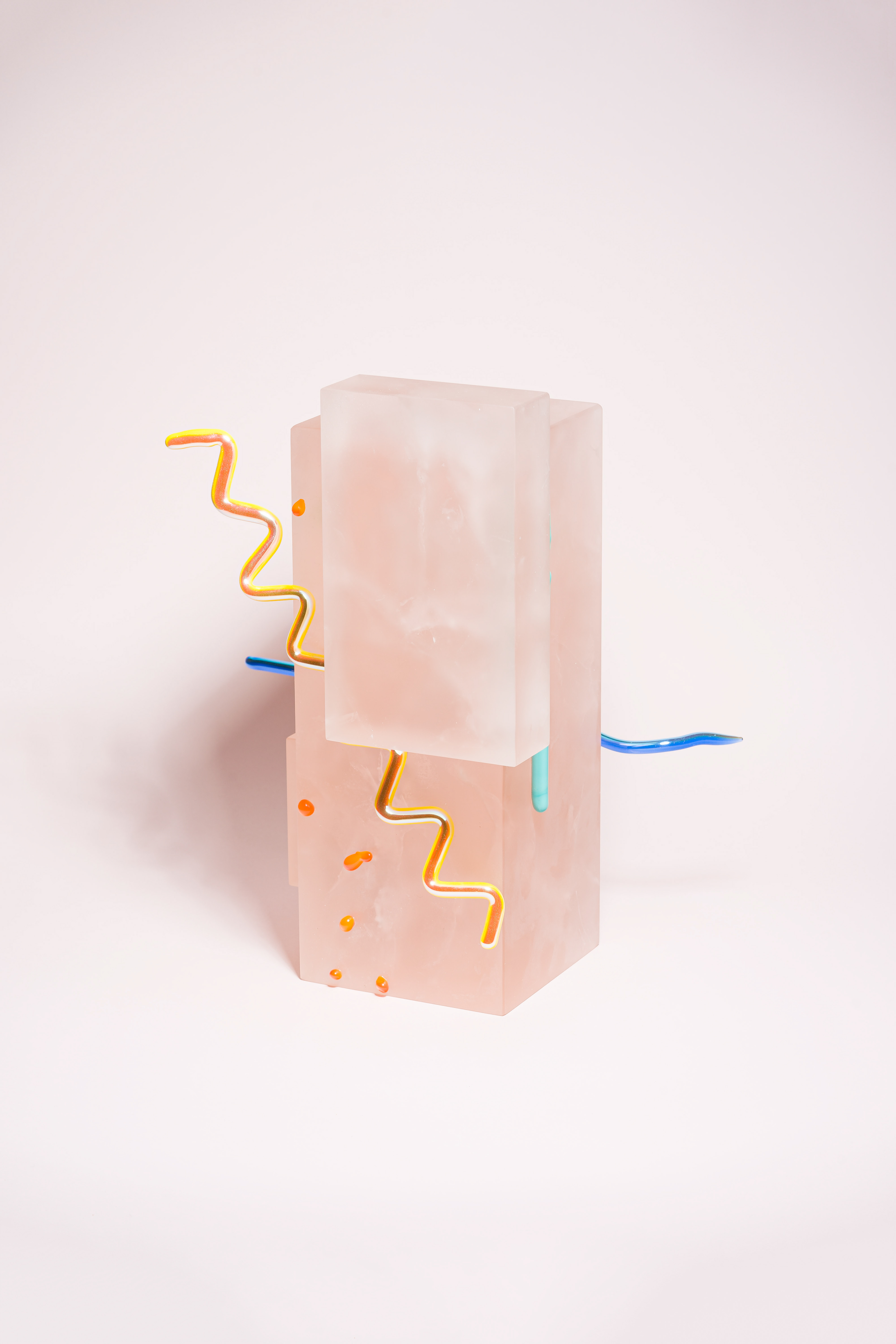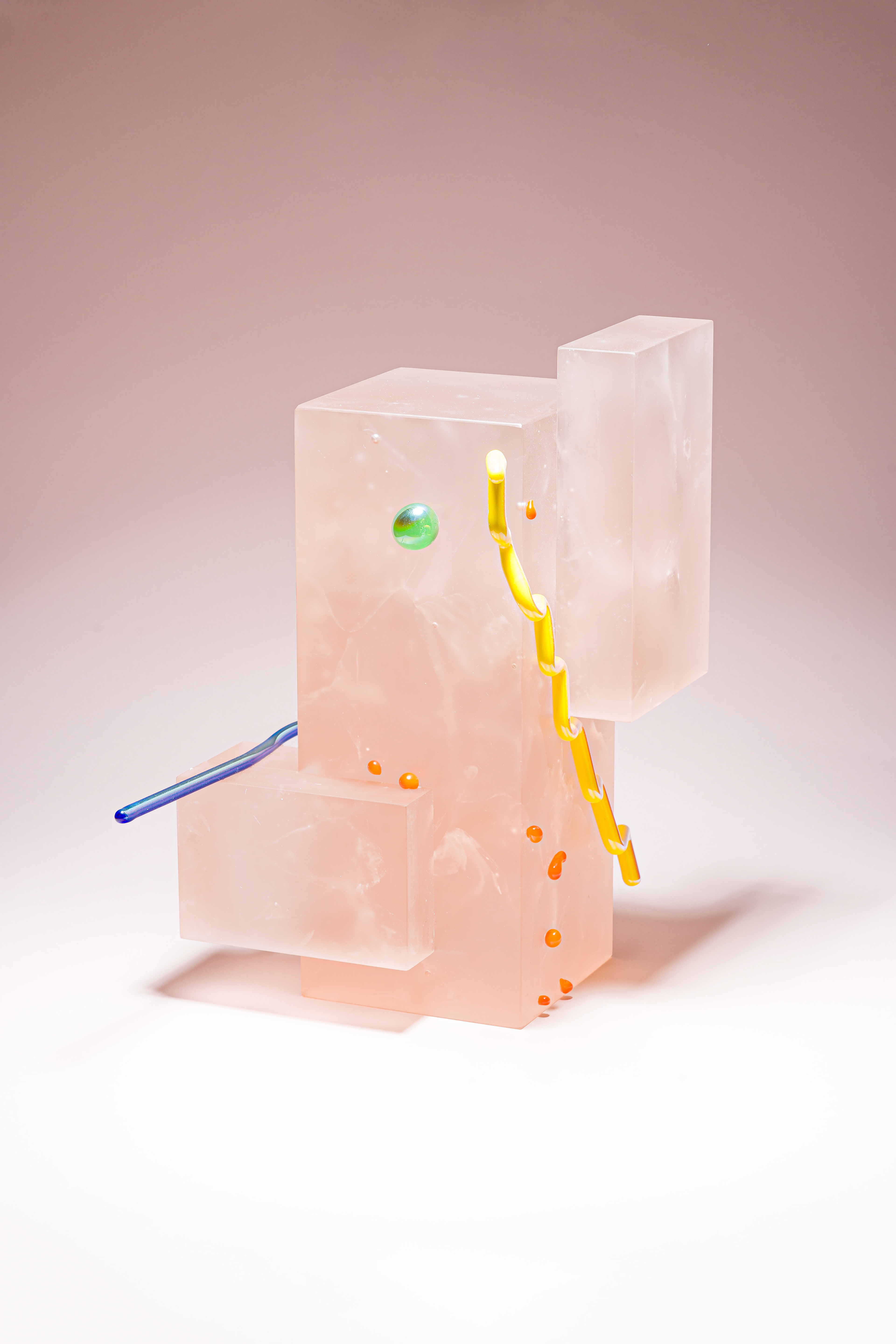 tavená plastika, lampové sklo 2023 Plastika Totem je založena na kontrastu dvou výrazově odlišných poloh v rámci jediného materiálu – skla. Statické, minimalisticky tvarované bloky taveného skla vytvářejí klidný základ, který doplňují expresivní barevné prvky z lampových tyčinek. Právě v nich se soustřeďuje kreativní energie a jsou zde zhmotněny automatické kresby vznikající při poslechu hudby. Dílo propojuje a zároveň rozlišuje nekonkrétní, potlačený rukopis s intuitivním, gestickým projevem a spojuje dvě sklářské techniky – tavenou plastiku a tvarování skla u kahanu – do jedné sochařské formy.